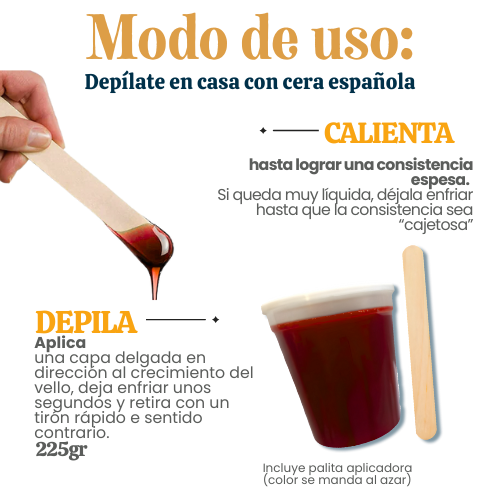 Depila el vello desde la raíz con cera española natural. Depilación eficaz y duradera para una piel suave.